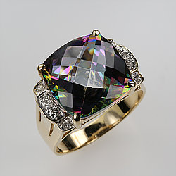 Topaz Jewelry - Solid 14K Gold Mystic Topaz Ring