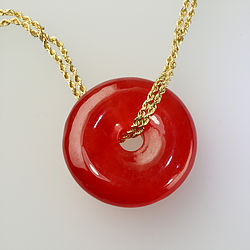 Solid Red, Brown Jade Disc Pendant