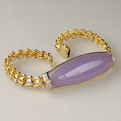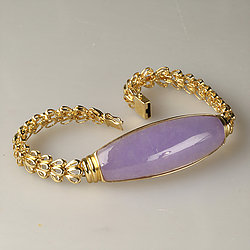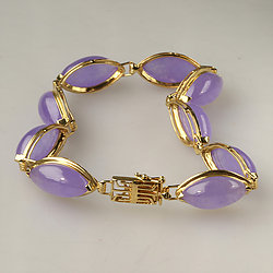 14k Gold Oval Cabochon Lavender Jade Bracelet