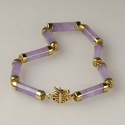 14k Gold Tubular Lavender Jade Bracelet