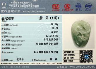 Certificate of Masterpiece Jade Jewelry Pendant MPJP27 & MPJP28