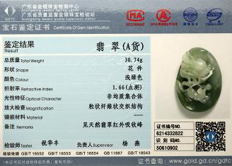 Certificate of Masterpiece Jade Jewelry Pendant MPJP33 & MPJP34