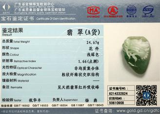 Certificate of Masterpiece Jade Jewelry Pendant MPJP23 & MPJP24