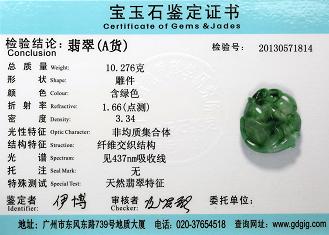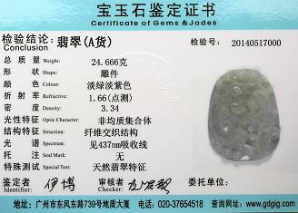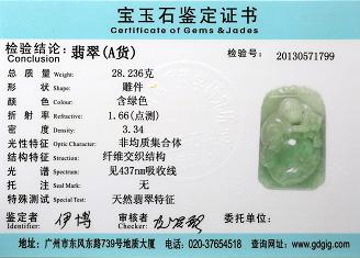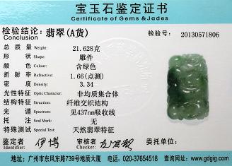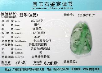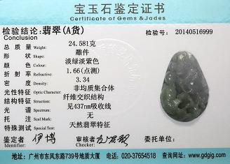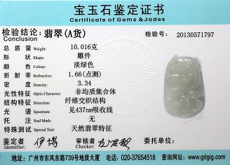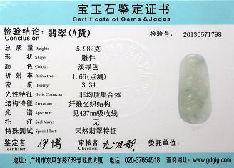 Certificate of Masterpiece Jade Jewelry Pendant Front Cover Photo