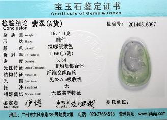 Certificate of Masterpiece Jade Jewelry Pendant MPJP21 & MPJP22