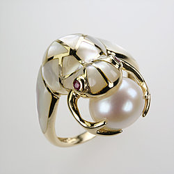 Mother of Pearl Ring with 14K Gold |
