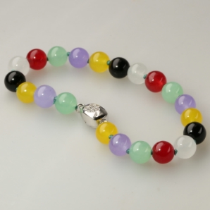 925 Sterling Silver & Multicolor Jade Beads Bracelet, 7-1/2 Inch