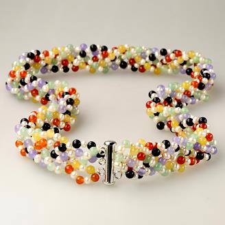 Featured Jewelry from the Multi Color Jade Beads & Pearl Necklace, 19 Inch