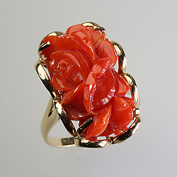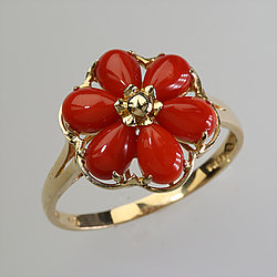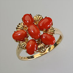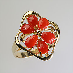 Coral Jewelry - Solid 14K Gold Coral Ring |