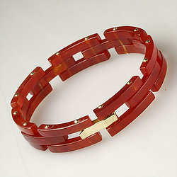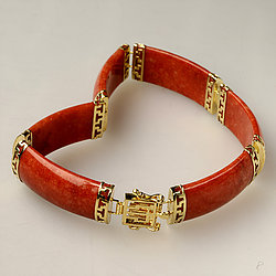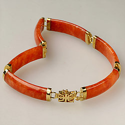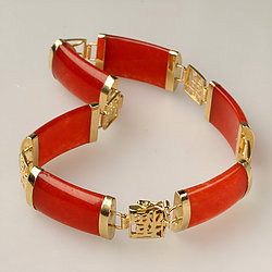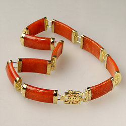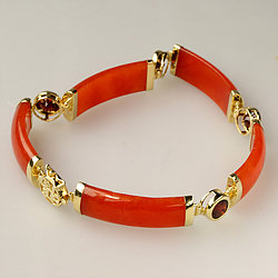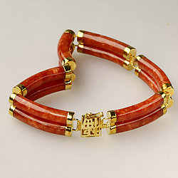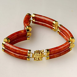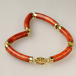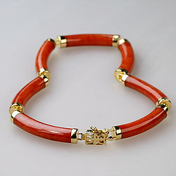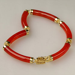 14k Gold Segment Red Jade Bracelet Collection