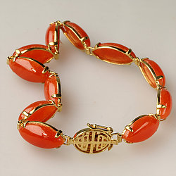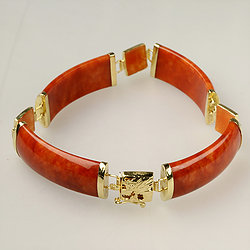14k Gold Marquise Red Jade Bracelet Collection