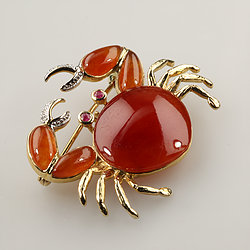 Solid 14K Gold White Red Jade Pin Brooch Collection
