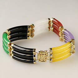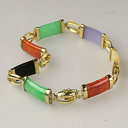 14k Gold Segment Multi Color Jade Bracelet