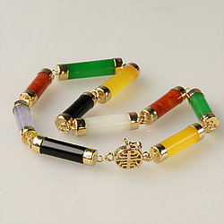 14k Gold Tubular Multi Color Jade Bracelet