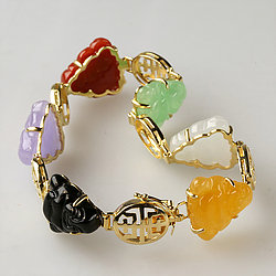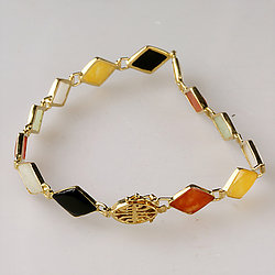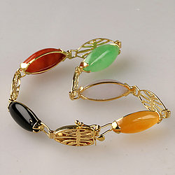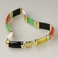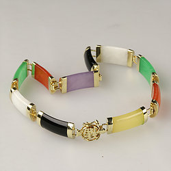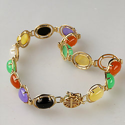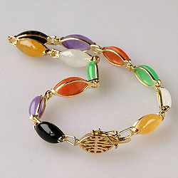 14k Gold Gold Fish Multi Color Jade Bracelet