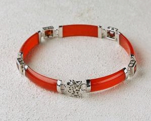Collection of Sterling Silver Red Jade Bracelet