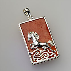 925 Stirling Silver Red Jade Pendant