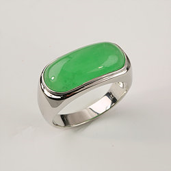 925 Sterling Silver Solid Green Jade Band Ring
